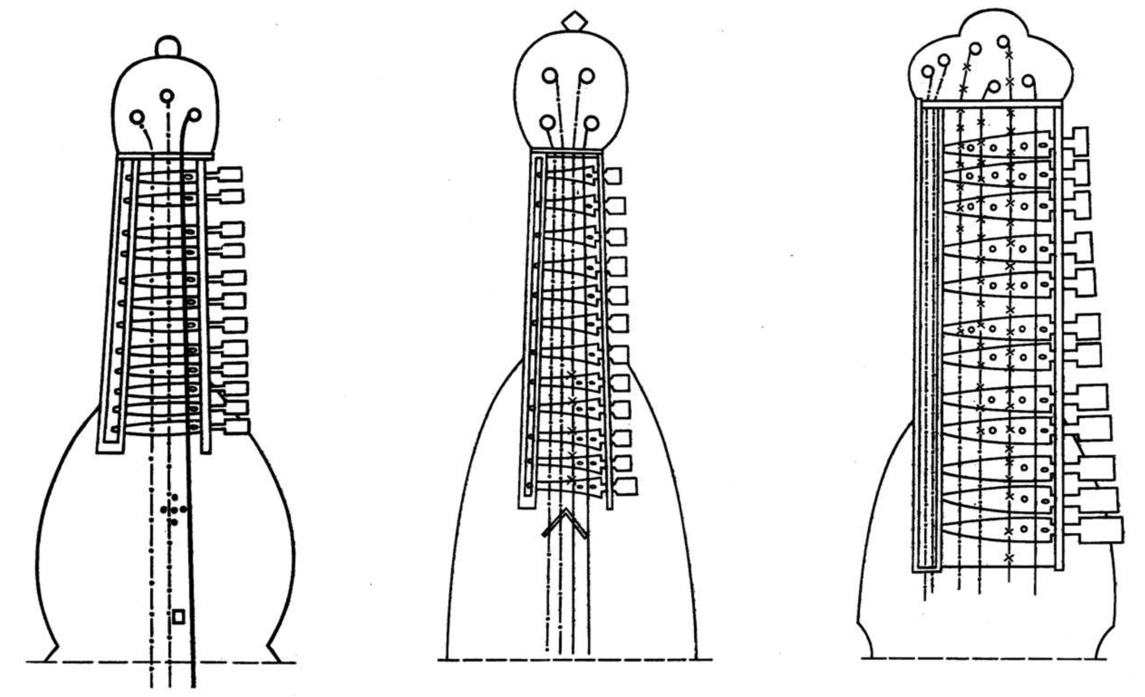 The keyed fiddle from Esse (Leonard Häll’s collection in Finland) do also has a row of keys, each with a single tangent, except for the uppermost keys, which have two tangents.
