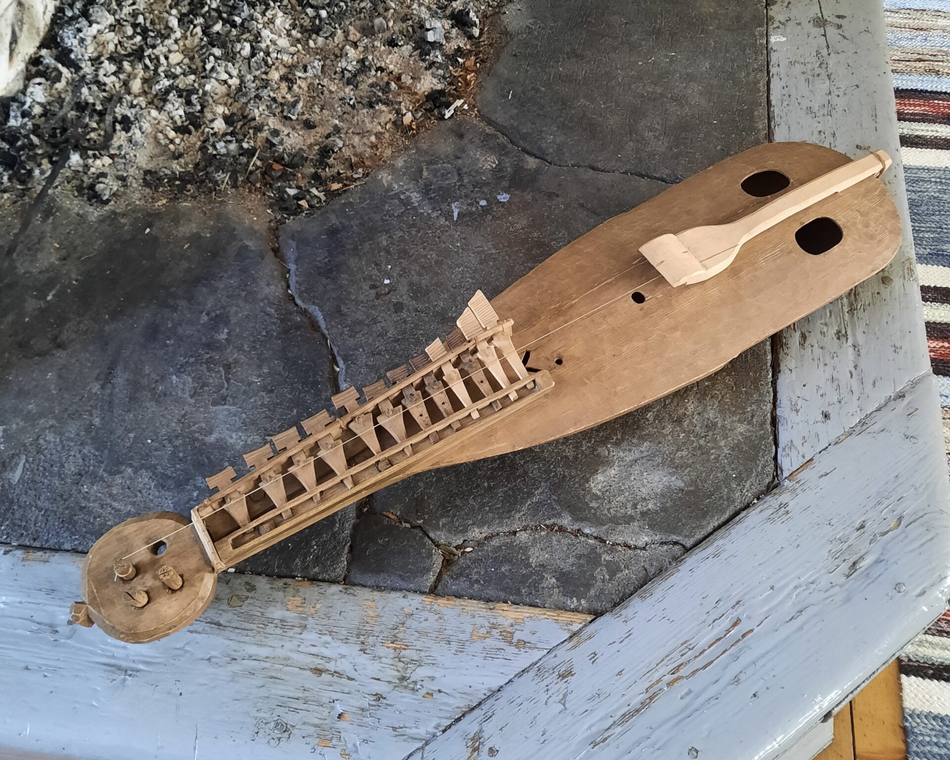 The Vefsen instrument features two parallel-coupled mixtur strings, two alternating mixtur and drone strings depending on the engaged knaver, and two drone strings. Based on radiocarbon dating of the wood and the ornamentation, it most likely dates from the late 1600s.